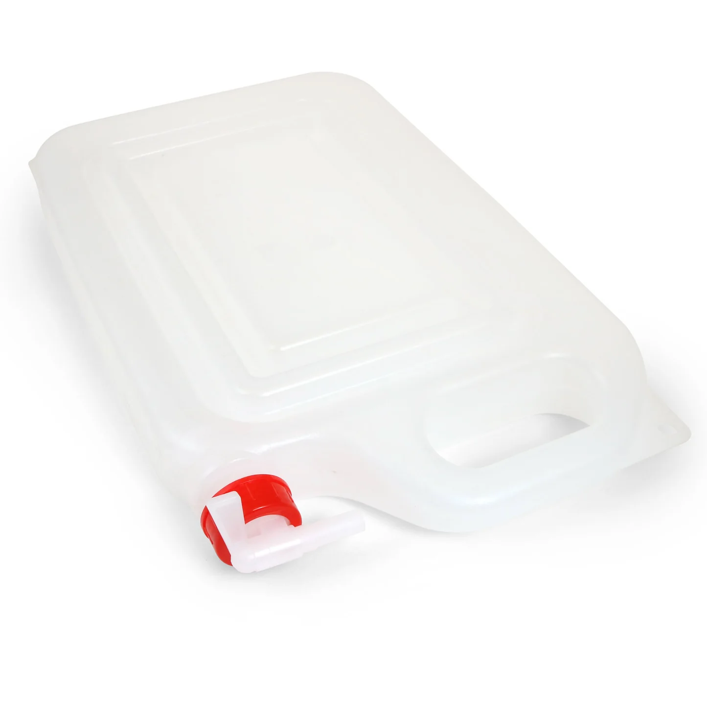 O transportador de água expansível da Coghlan's oferece armazenamento e distribuição de água sem complicações em seu acampamento ou em seu veículo. Feito de polietileno de alta resistência e de qualidade alimentar, o recipiente sem BPA fornece armazenamento seguro de água potável para que você possa economizar viagens à fonte de água para encher garrafas de água e utensílios de cozinha. Quando expandido, o transportador de água oferece 2,11 galões (8 litros) de armazenamento de água - fornecendo água suficiente para todas as suas necessidades diárias de beber e cozinhar. Quando não estiver em uso, o recipiente achata-se para 2,25 polegadas, permitindo que você economize espaço em seu veículo ou trailer. A válvula fácil de usar gira para permitir que a água flua para fora do recipiente, e a alça de transporte confortável torna a movimentação do transportador indolor.