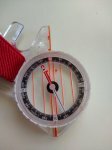 Esta bússola é intercambiável, ou seja, pode ser convertida para uso tanto no polegar esquerdo quando no direito.