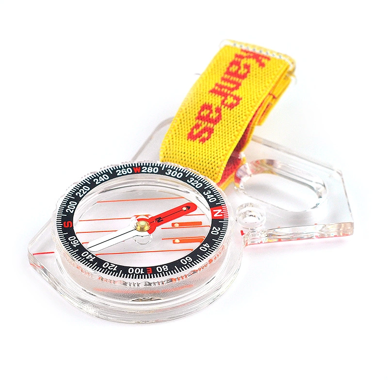Bússola com tira elástica para fixação no polegar esquerdo, permitindo conduzir a bússola e o mapa com a mesma mão durante a corrida. Possui agulha com rápida estabilização, limbo móvel 360º e régua de 3cm com marcações a cada 5mm. Apresenta pontos luminosos fosforescentes para uso noturno.