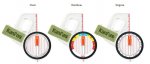 Bússola com tira elástica para fixação no polegar esquerdo, permitindo conduzir a bússola e o mapa com a mesma mão durante a corrida. Possui agulha com rápida estabilização, limbo arco íris e régua de 3cm com marcações a cada 5mm. Apresenta pontos luminosos fosforescentes para uso noturno.