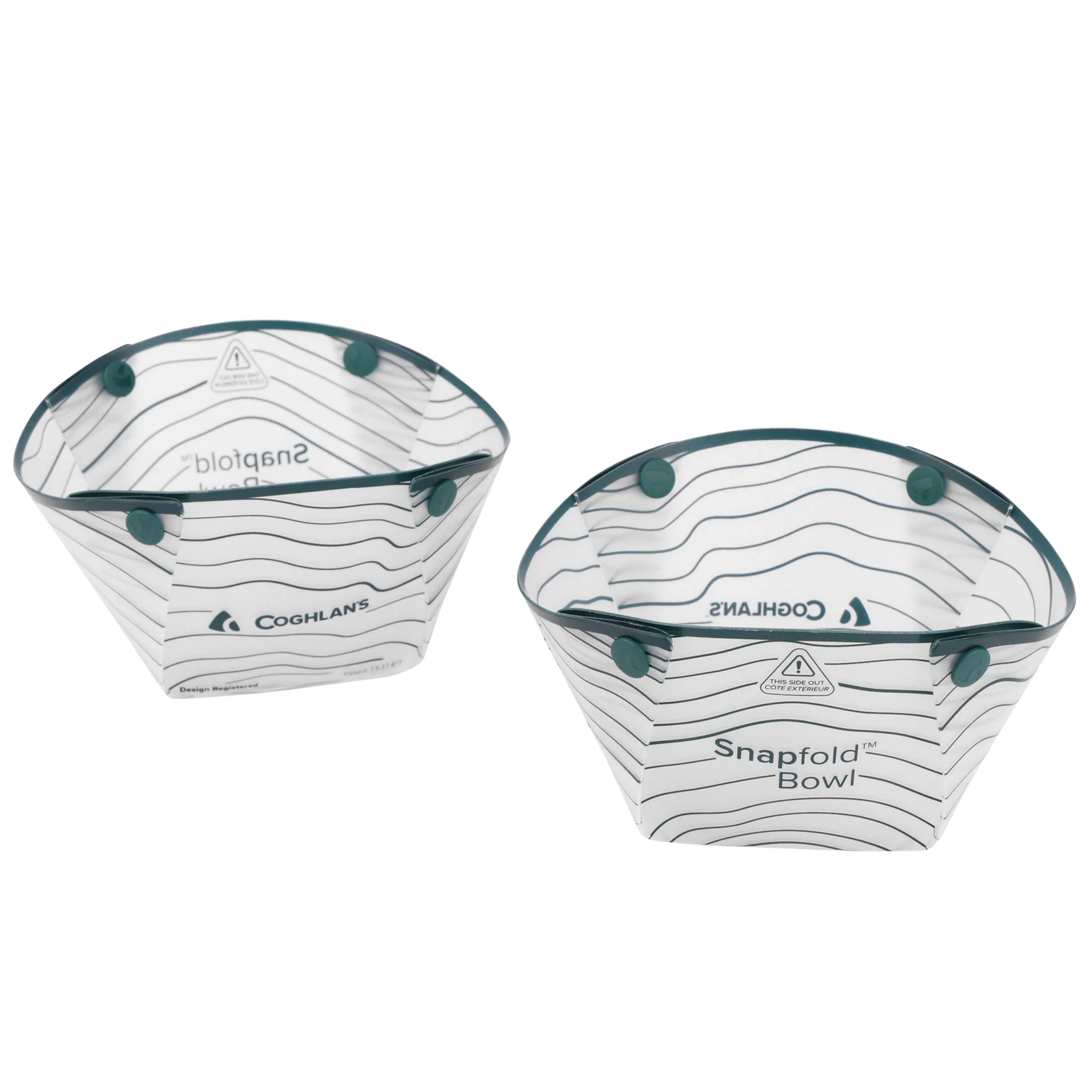 Quando espaço e peso importam, as tigelas Snapfold™ da Coghlan's são a escolha inteligente e conveniente. Este kit com duas tigelas versáteis dobra para armazenamento compacto e monta em segundos quando é hora de saborear uma refeição. O design patenteado à prova de vazamentos garante que sua comida acabe na sua boca e não no seu colo.