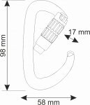 - Um mosquetão compacto e leve com travamento automático, projetado para uso em fixações de ancoragem e com dispositivos mecânicos, como dispositivos de frenagem assistida