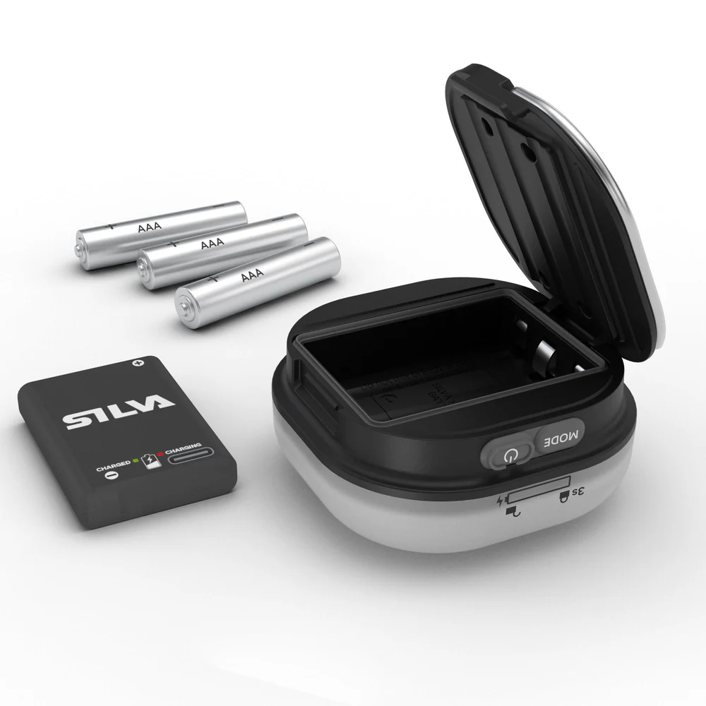 Incremente suas noites ao ar livre com a Glow, a lanterna que espalha um brilho aconchegante no acampamento, durante aventuras ao ar livre ou na barraca. Os dois modos de iluminação permitem alternar entre uma luz de trabalho de 360° ou um brilho suave, semelhante ao de uma fogueira. Coloque a lanterna sobre uma mesa ou no chão, use seu gancho para incliná-la ou ambos os ganchos para pendurá-la. A Glow é feita de materiais reciclados e pode ser usada com pilhas AAA e com a bateria híbrida Silva recarregável (não incluídas).