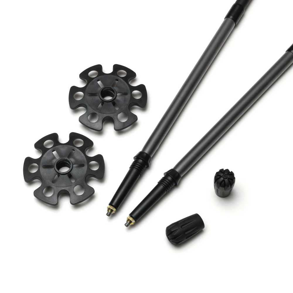 Os bastões de trekking possuem cabos extralongos, permitindo que você ajuste sua pegada ao terreno. Os cabos são feitos de espuma e cortiça duráveis e confortáveis. As alças macias para os pulsos são ajustáveis para máximo conforto e suporte durante a caminhada. Os bastões vêm com pontas côncavas de carboneto para máxima aderência em superfícies duras e são intercambiáveis com as cestas de neve incluídas ou pontas de borracha, dependendo das suas necessidades.
