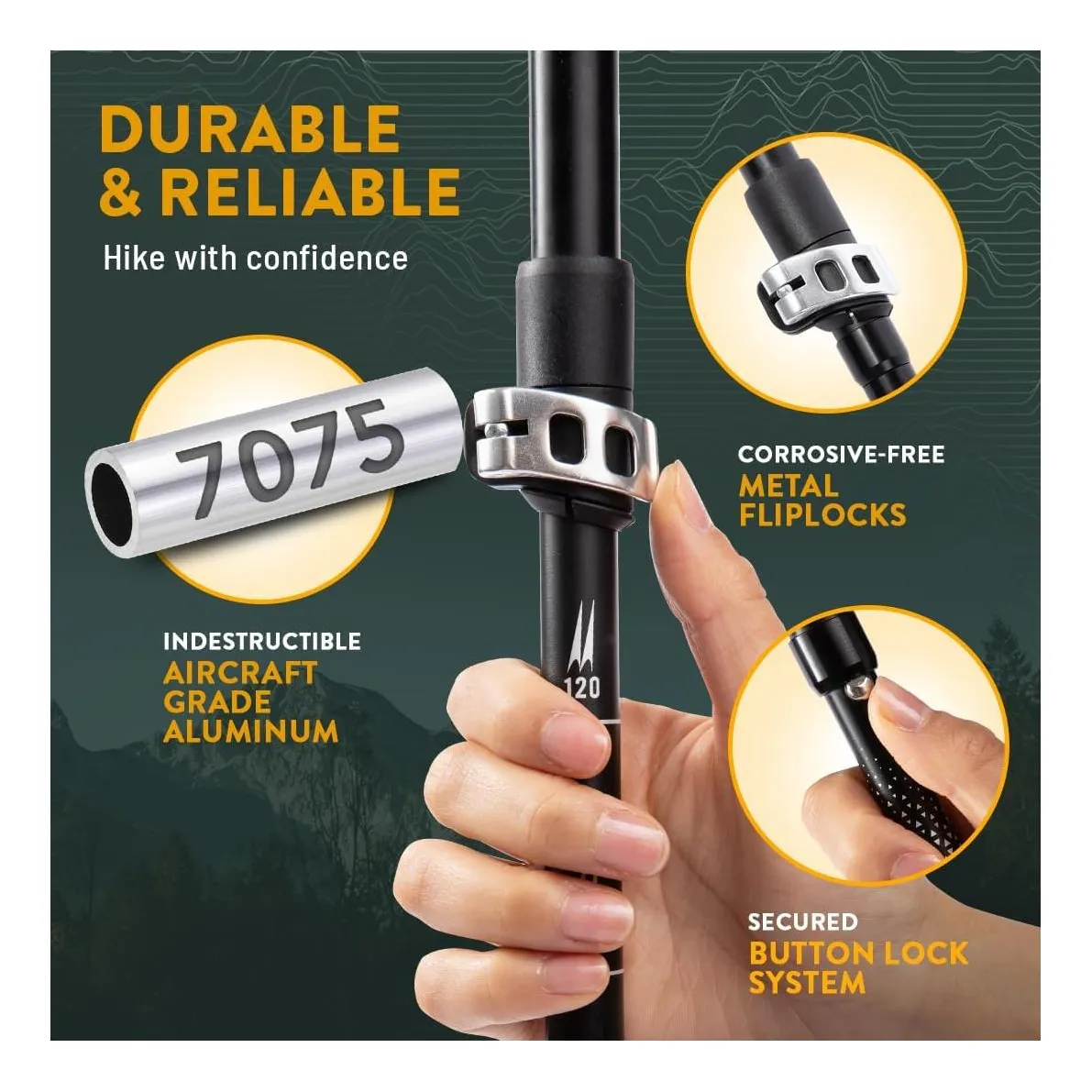 Com apenas 280g, esse bastão foi classificado como um dos mais leves vendido no mercado brasileiro, sendo um grande aliado nas montanhas e trekkings mais difíceis, além de auxiliar na gestão de energia ao caminhar, garantindo ainda um maior equilíbrio do corpo.