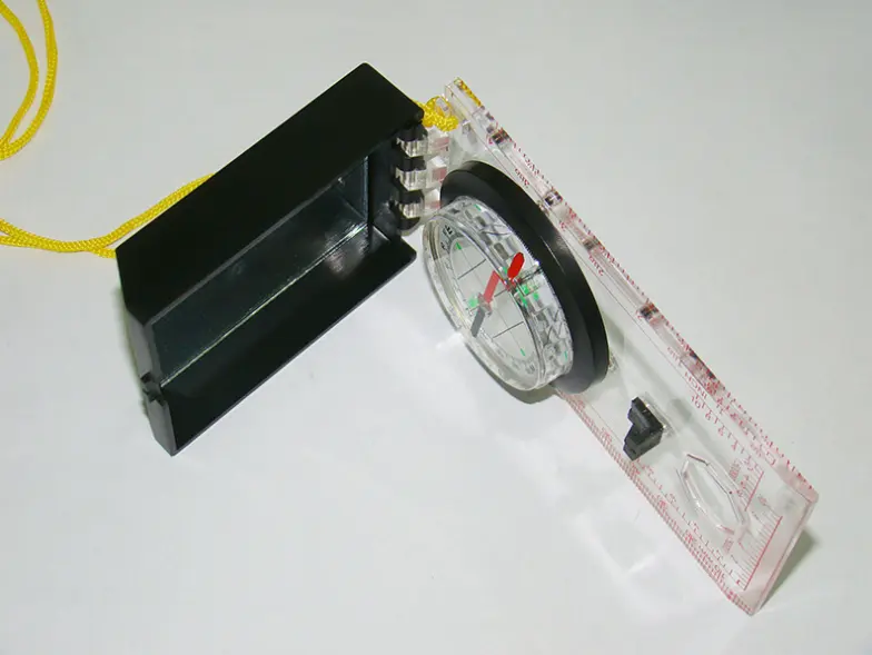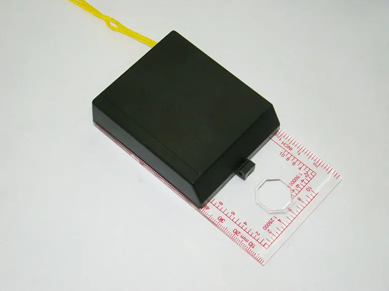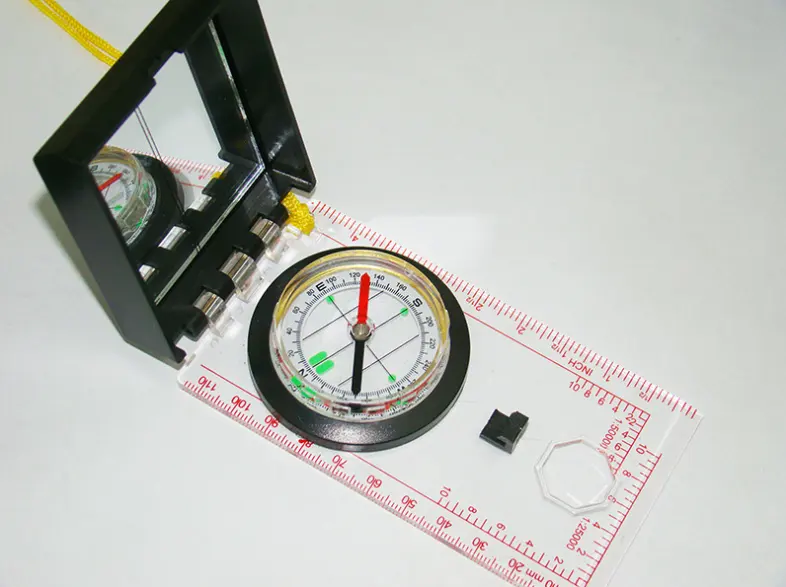 Bússola semi-profissional com sistema de azimute com espelho e um pequeno orifício para visada. Possui limbo móvel, base transparente acrílica, pontos luminosos fosforescentes e escala fixa de correção de declinação. No centro possui régua de 40mm e escalímetros 1:25.000 e 1:50.000 nas laterais.