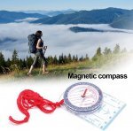 Bússola navegação mapa com corpo em plástico resistente, líquida, com régua, ideal para localização de posições em mapas. Precisa, leve e eficiente. Acompanha corda de nylon.